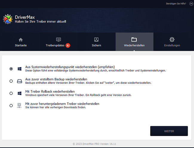 Zusätzlich erstellt DriverMax 16 ein Backup der bereits vorhandenen Treiber, so dass Sie die Installation mit Hilfe eines Systemwiederherstellungspunktes schnell wiederherstellen können, falls doch einmal etwas schief gehen sollte.