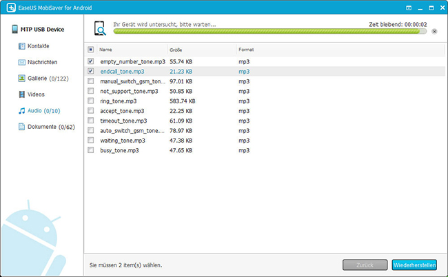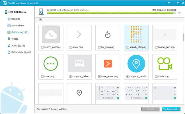 Stellen Sie Ihre gelöschten Kontakte, SMS, Fotos, Videos, Audios und Dokumente wieder her!
