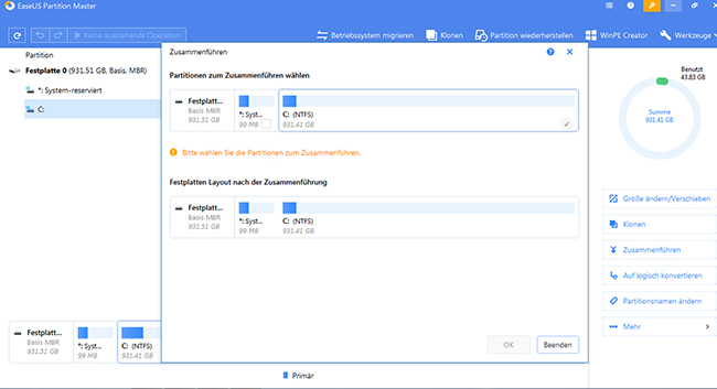 - Managen/Zusammenführen/Formatieren/Löschen/Wiederherstellen von Partitionen