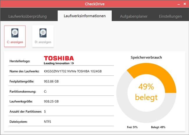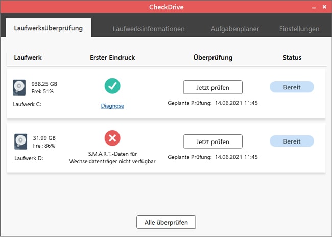 Überprüft Festplatten: CheckDrive 2023 überprüft Ihre Festplatten sicher und schnell und Fehler werden zuverlässig beseitigt.