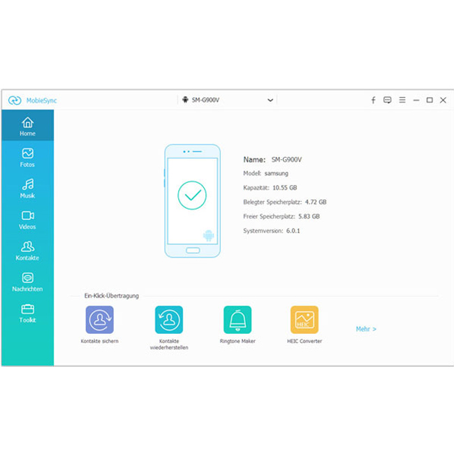 Es ist dazu fähig, Kontakte, Fotos, und Mediendateien zwischen iOS- und Android-Gerät zu synchronisieren. Die Daten bei der Kopierung ist verlustfrei. Und mit gerade einem Klick wird der Kopiervorgang erledigt.
