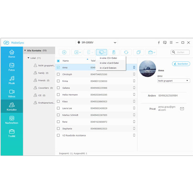 • Daten zwischen iOS oder Android synchronisieren - Fotos, Kontakte, Video und Audio zwischen iOS/Android-Geräten synchronisieren.