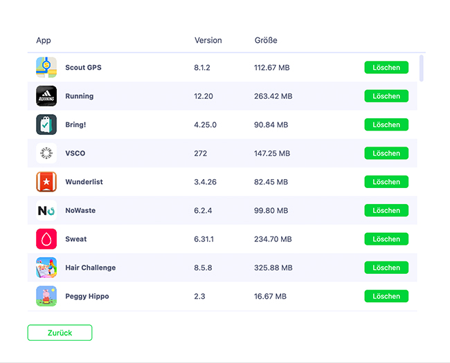 Diese Software kann alle Apps auf Ihrem iPhone/iPad erkennen und präsentieren, zusammen mit dem belegten Speicherplatz. Dann können Sie die nicht mehr verwendeten Apps löschen.
