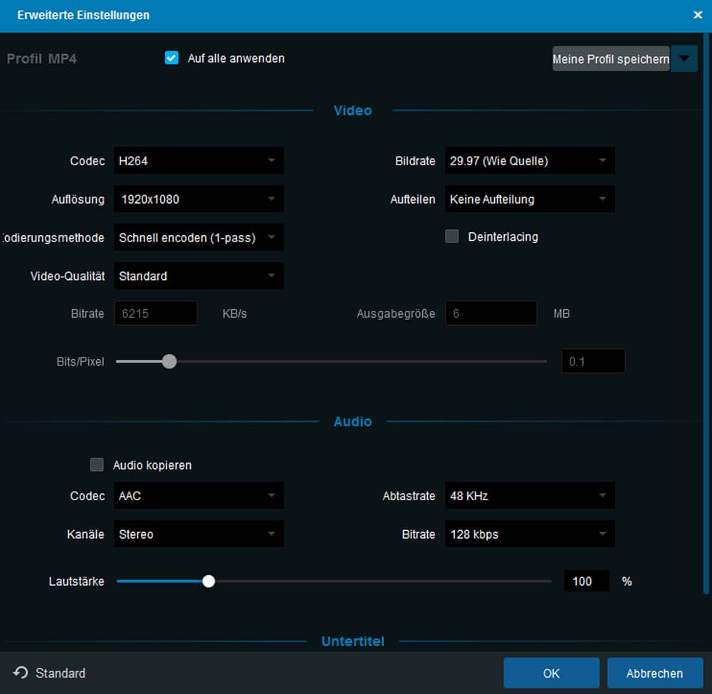 Die Software erlaubt es Ihnen, die Konvertierungsparameter so einzustellen, dass die Originalqualität erhalten bleibt.