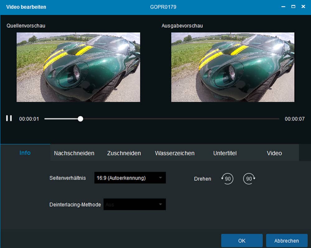 - Konvertieren, trimmen, schneiden oder drehen Sie Ihre Videos