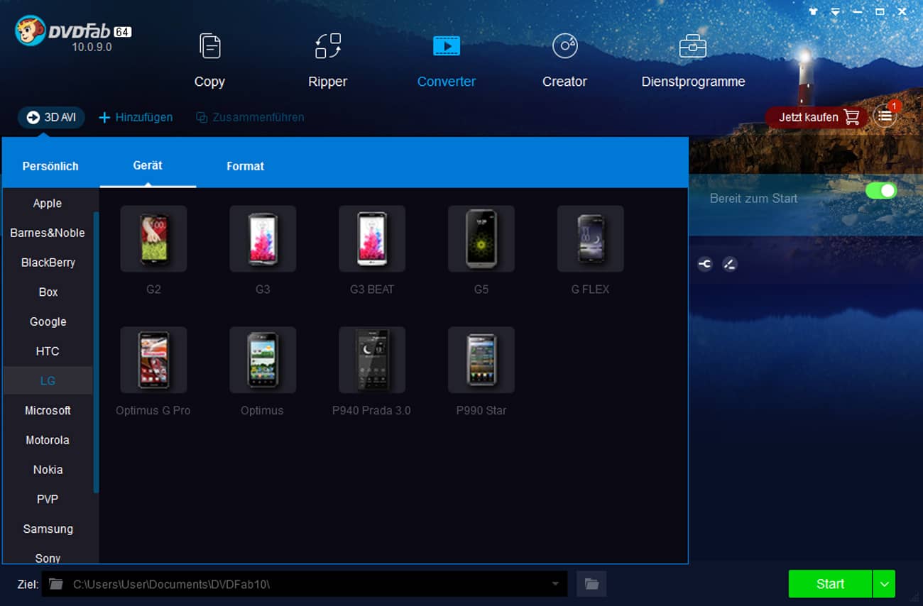 Der DVDFab Video Converter bietet Ihnen die volle Kontrolle über die Einstellungen der gewünschten Parameter, einschließlich Format, Dateigröße, Zielordner, fps-Rate usw.
