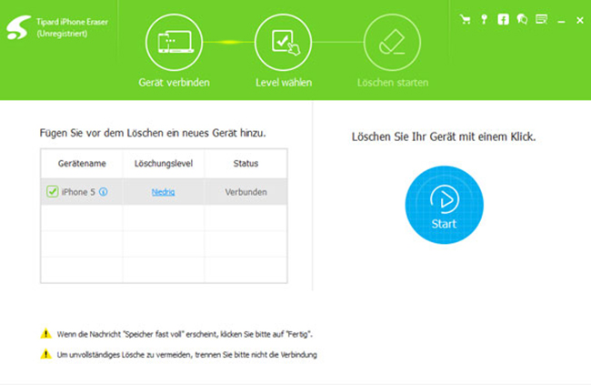 Diese Software zum Löschen Ihrer Daten vom iPhone entfernt nicht nur alle Daten zuverlässig, sondern überschreibt auch Ihren Speicherplatz mittels eines hochsicheren Verfahrens, sodass Ihre Daten unmöglich von Unbefugten wiederhergestellt werden können.
