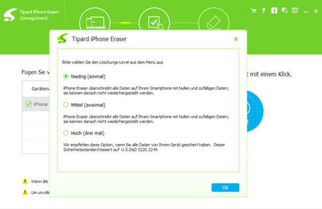 Ihre Daten sind ausschließlich nach dem Überschreiben mit iPhone Eraser unauffindbar und nicht mehr wiederherstellbar.