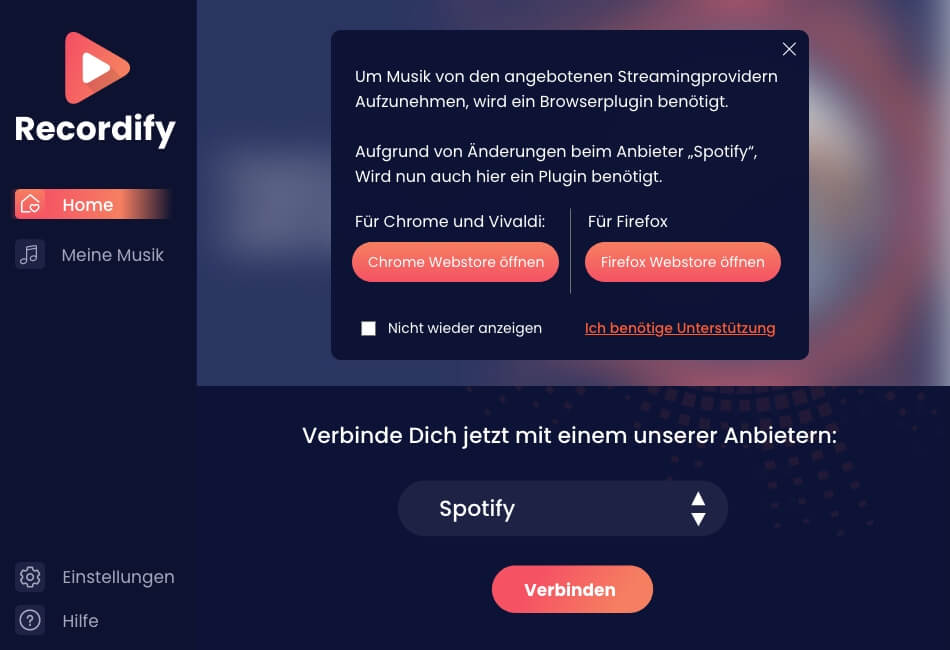 Mit Recordify können Sie Musik von Spotify, Apple Music oder auch Amazon problemlos aufnehmen und speichern.