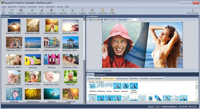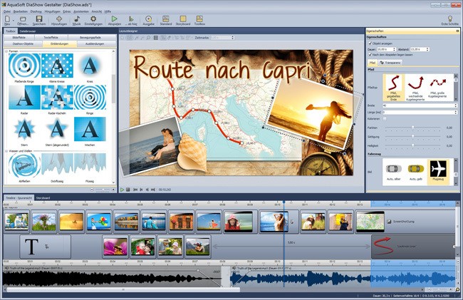 Erstellen Sie einzigartige Diashows von Geburtstagen, Hochzeiten oder Urlauben und beeindrucken damit Familie und Freunde. Der DiaShow Gestalter enthält ein großes Repertoire an Werkzeugen, mit denen Sie Ihr Projekt bearbeiten.