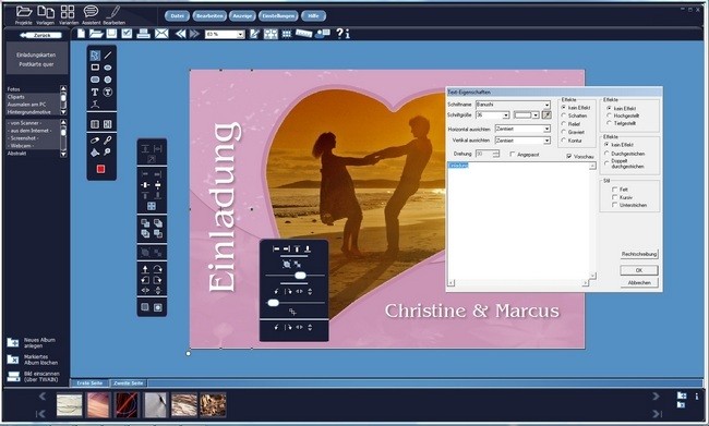 Greifen Sie hierfür auf zahlreiche Mustervorlagen zu, die Sie dann ganz einfach nach Ihren Wünschen anpassen können. Verändern Sie Texte, fügen Sie eigene Bilder ein und versehen Sie Fotos mit kreativen Effekten.
