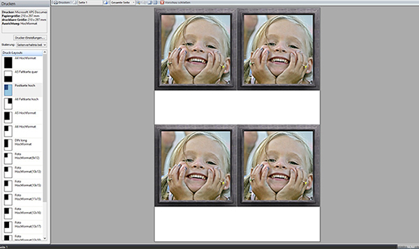 Selbstverständlich können Sie auch eigene Texte in die Fotokomposition einfügen, bevor Sie diese dann auf Ihrem Drucker ausdrucken oder per E-Mail an Freunde und Bekannte versenden.