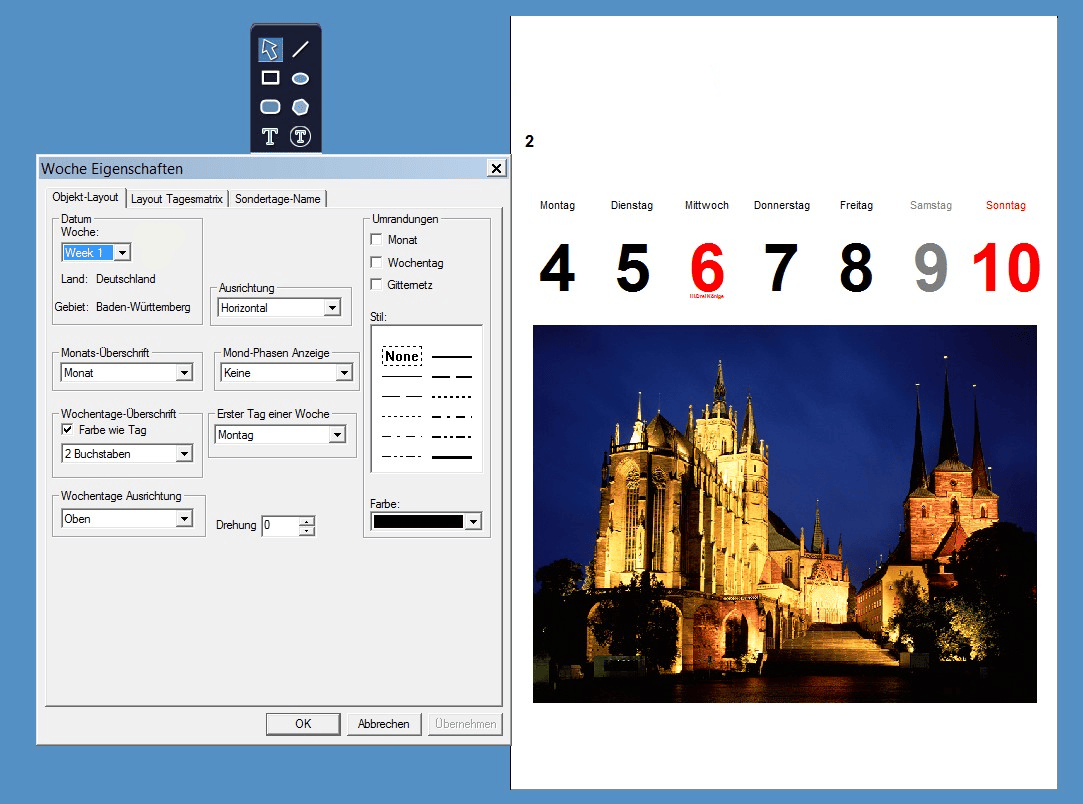- Unendliches Kalendarium die Kalendarien werden automatisch für jedes Jahr neu berechnet. Einmal gestaltet, immer verwendbar