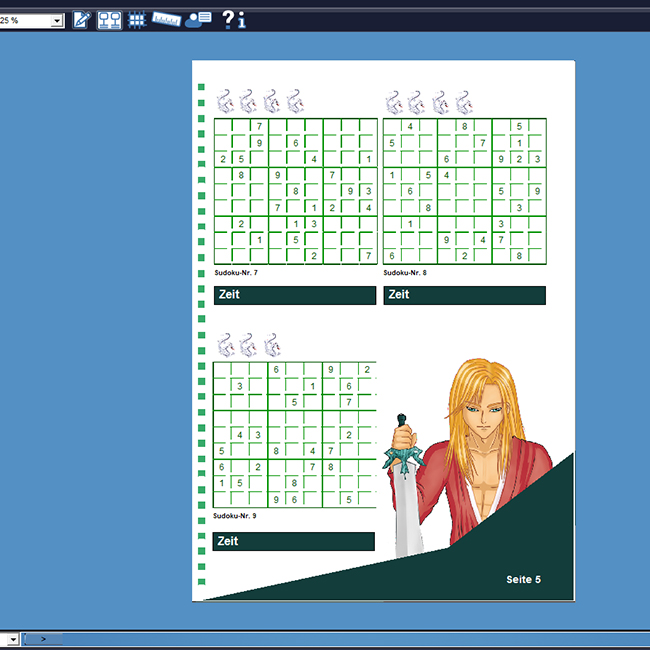 - Variable Seitenlayouts egal ob nur ein Sudoku auf einer Seite oder 10, alles ist frei einstellbar nach den persönlichen Vorlieben. Fertige Seitenlayouts erleichtern das Erstellen!