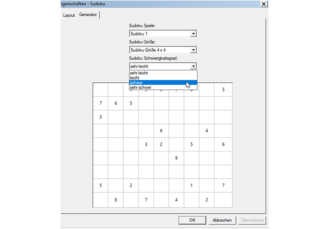 - Vier Sudoku-Matrixgrößen