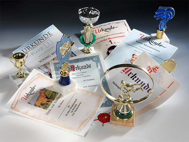 - vorgestaltete Urkunden für viele Anlässe und Sportarten