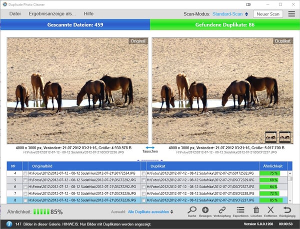 Genau hier kommt DER Duplicate Photo Cleaner ins Spiel. Denn trotz des Namens kann er noch viel mehr als doppelte Fotos finden! Er findet auch ähnliche Fotos!