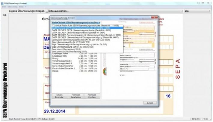 - Leichtes Bedrucken der SEPA-Überweisungsträger dank übersichtlichem Druckassistenten