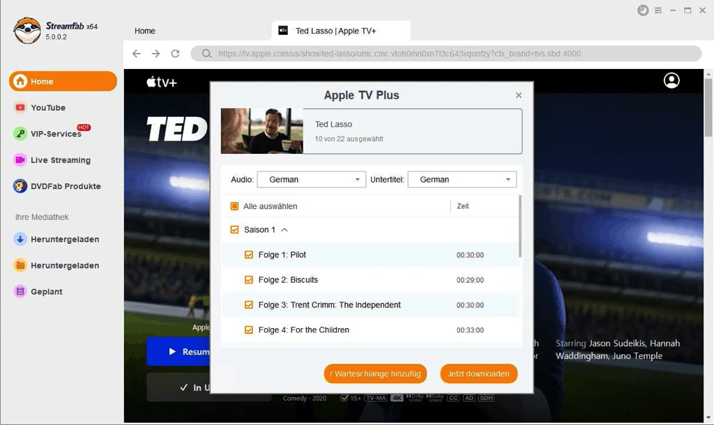 Die Software ist eine praktische Lösung, um Ihre Videos vom Apple TV+ Streaming Service herunterzuladen, und das sogar in der höchsten Qualität.