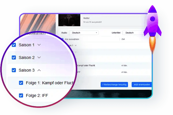 Wenn Sie ein Video abspielen, das zu einer TV-Serie gehört, kann die Software dies sofort erkennen und dann die nötigen Informationen aller Folgen der Serie zusammenstellen. Statt diese Folgen alle einzeln herunterzuladen, können Sie sie im Batch, mit nur einem Klick, downloaden!