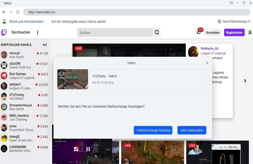 Twitch Streaming Inhalte mit einer hohen Qualität von bis zu 1080p herunterladen