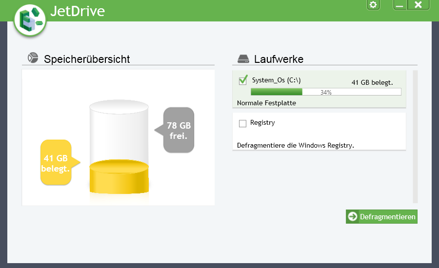 JetDrive 9 kümmert sich übrigens nicht nur um die Defragmentierung der Festplatten und der geschützten Windows-Dateien. Das Programm kann auch die Registry defragmentieren, um so für ein Performance-Plus zu sorgen. Hinzu kommt: JetDrive 9 erkennt einfache Fehler im Dateisystem der Festplatten und kann diese beheben. Umfangreiche Berichte des eigenen Tuns runden den Funktionsumfang des Programms ab.