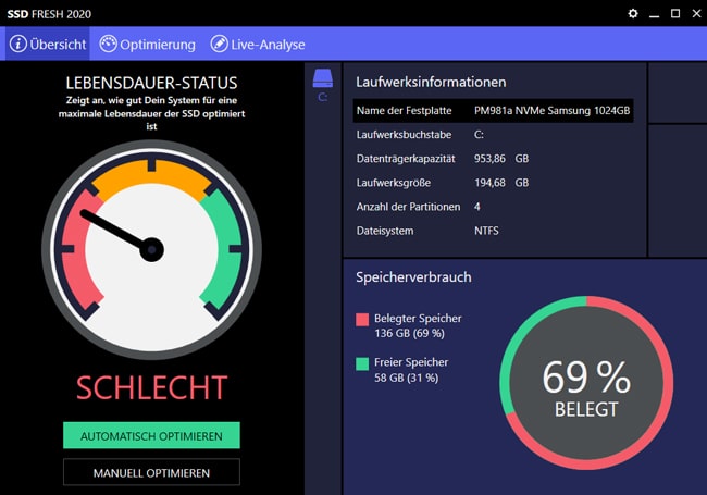 SSD-Platten sind der Heilige Gral beim Rechner-Tuning. Die Festplatten haben dramatisch bessere Zugriffszeiten als die klassischen Platten. Das Tool SSD Fresh holt noch mehr Tempo aus den SSD-Platten heraus und sorgt dafür, dass sie länger leben.