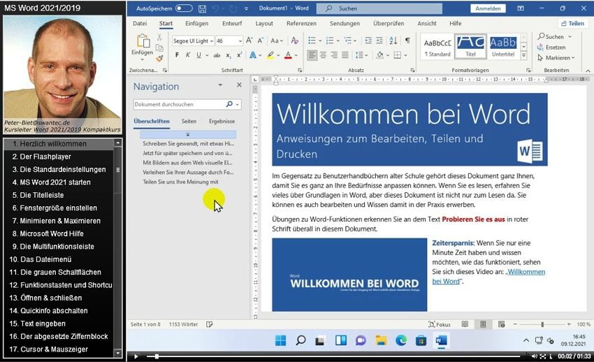 Video Lernkurs für Word 2019, 2021 und Office 365