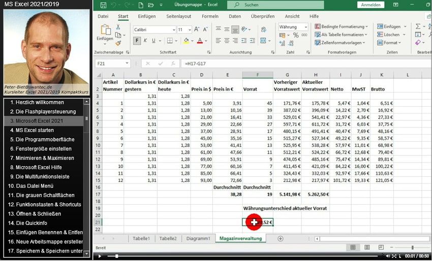 Video Lernkurs für Excl 2019, 2021 und Office 365