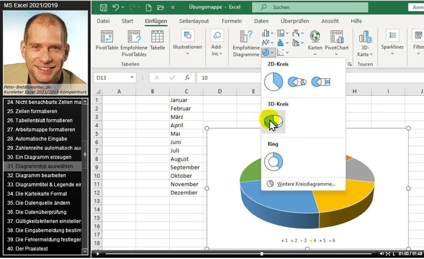 Darüber hinaus zeige der Kurs Ihnen, wie SIE Ihre Daten überzeugend in Diagrammen präsentieren und perfekt zu Papier bringen können. Mit unseren Video-Workshops lernen Sie Excel innerhalb kurzer Zeit kennen. Sie erfahren, wie sterben neue Benutzeroberfläche von Excel aufgebaut ist und wie Sie sich schnell in ihr zurechtfinden…